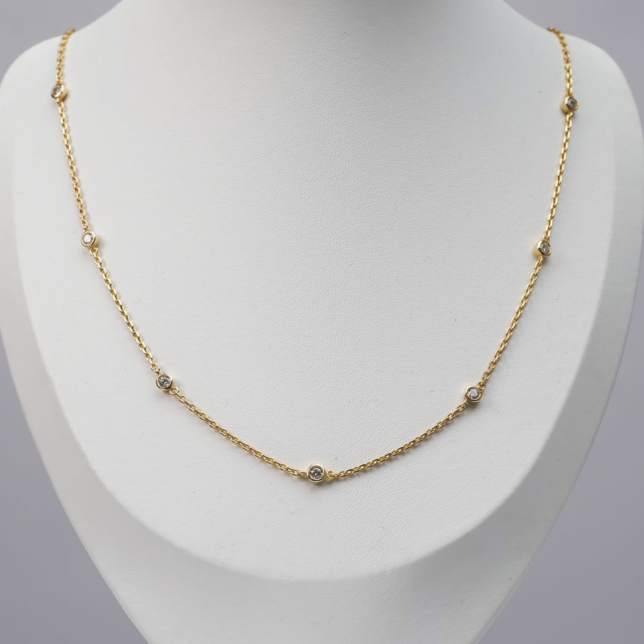 Timeless and versatile, the Everyday Classic Necklace is designed for those who love a touch of elegance in their daily style. Featuring a row of sparkling American diamonds, this luxurious necklace is finished in 18kt gold plating for a brilliant, long-lasting shine. Its 28.5-inch chain offers a longer drape, making it perfect for layering with shorter necklaces or wearing solo for a polished, statement-making look.